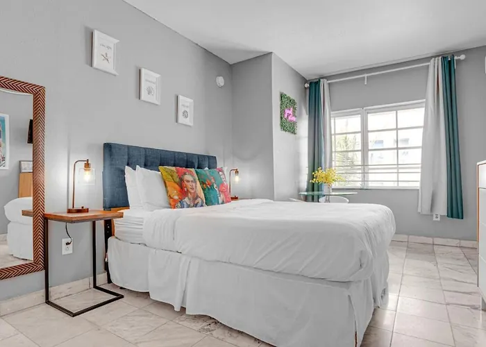 Com depósito de bagagem, o Frida Kahlo Studio South Beach Hideaway For Two Miami Beach de 1 quartos se situa no bairro South Beach em Miami Beach a 1.1 km de Museu Judaico da Florida - para aqueles que procuram turismo cultural. Wi-Fi está disponível para as necessidades de negócios ou lazer dos hóspedes.